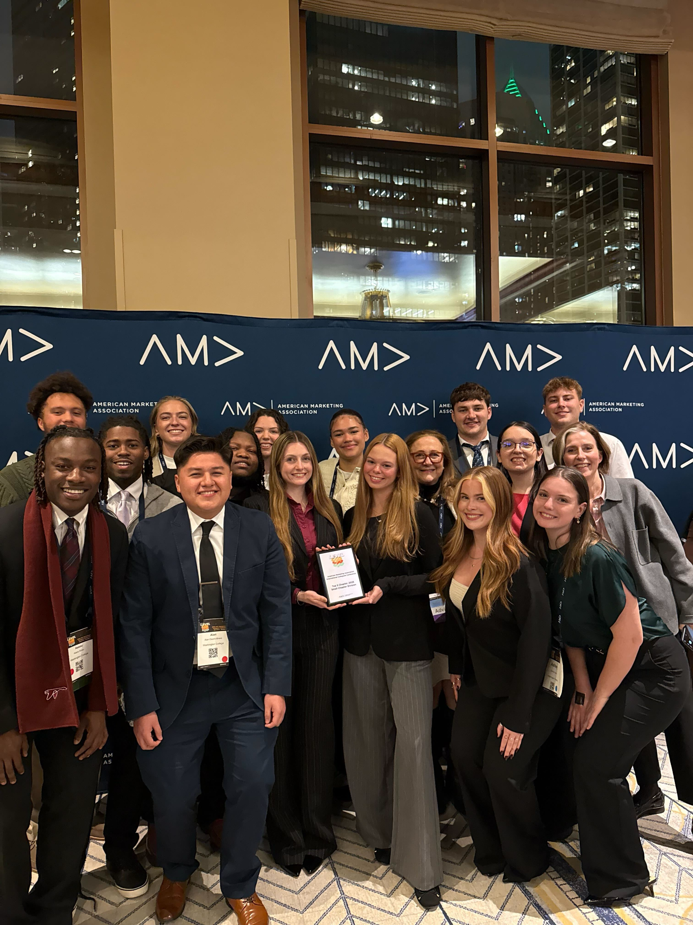 Washington College's AMA is thrilled to share a recap of our experience at the 2026 International Collegiate Conference, held March 12–14 in Chicago, Illinois. This year, we took the ICC theme of Level Up to heart, flying out to the Sheraton Grand Chicago Riverwalk for three days packed with competitions, connection, and celebration.